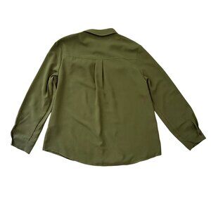 Olive Green Top Size Large Button Front Long Sleeve Blouse Fall Utility Neutral