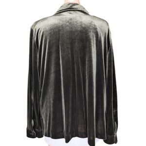 Olive Green Velvet Button Up Top Women Medium Grunge Minimalist Scandi Shacket