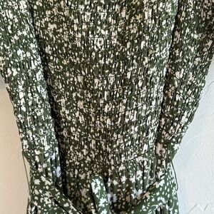 Flattering micro floral boho dress in a beautiful green shade. Round scoop neck with puff sleeves and smocked bodice. Long and flowy perfect for a spring/summer event! Sz 1X