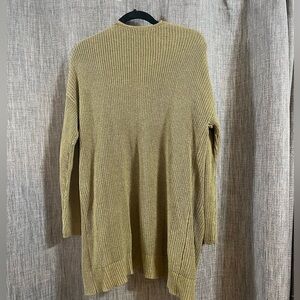 The Universal Thread Olive Green Knit Cardigan is a stylish and versatile addition to any woman's wardrobe. Made by the popular brand Universal Thread, this sweater in size Large features a comfortable and classic knit design in a trendy olive green color. With convenient pockets and a flattering cardigan style, this piece is perfect for layering over outfits in any casual or semi-formal setting. The olive green color adds a touch of sophistication, making it a must-have for any fashion-forward individual.