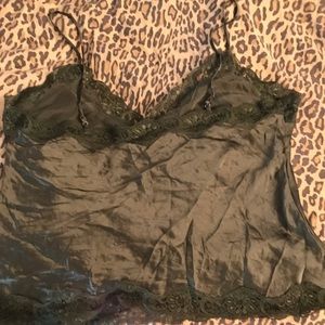 Green Camisole size large satin lace trimmed V- neck camisole