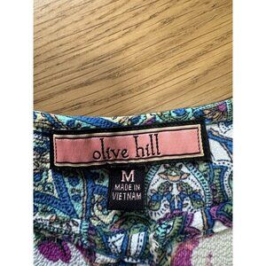 Olive Hill Floral Dress Women Size Medium Colorful Lightweight Buttons Polyester