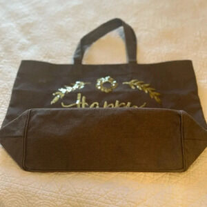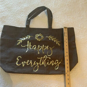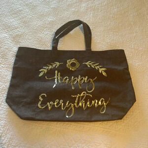 Olive & Hill “Happy Everything” gray, burlap bag. This bag is NWOT and in excellent condition from a pet and smoke free home.
