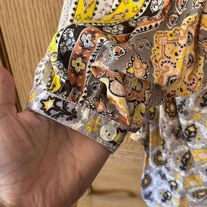 Olive Hill Boho Button Front Printed Blouse Top Small