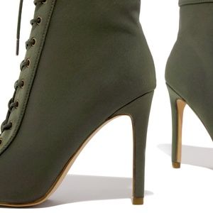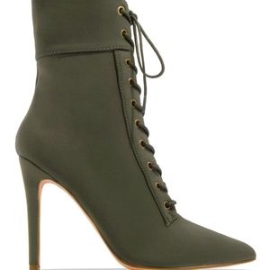 Olive Lace Up Heeled Booties