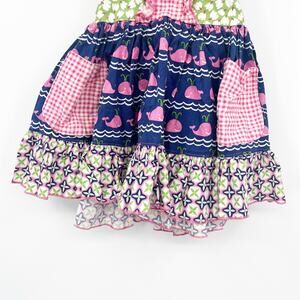 Olive Mae Toddler Girls Whale Gingham Mixed Print Tiered Halter Dress in Green Blue and Pink. Size 2T.