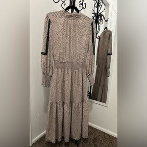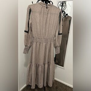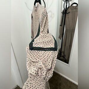 Trendy dress with black polka dots on a cream background. Ideal for casual outings.