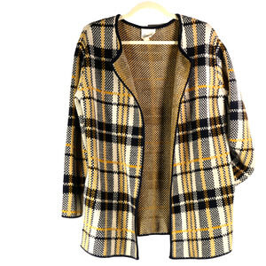 Olive Oak Cardigan Jacket Shacket S Mustard Blue Plaid Pockets Knit Oversized