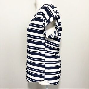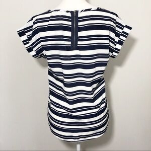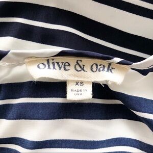 Olive & Oak Chiffon Striped Top with Cuffed Sleeves. Size XS. White with Navy Blue Stripes.