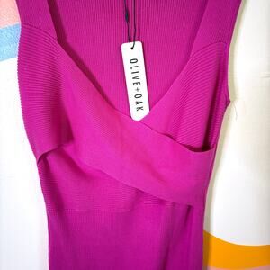 Olive + Oak Mini Sweater Dress Womens XL Fuchsia Pink Ribbed Knit Sleeveless NWT