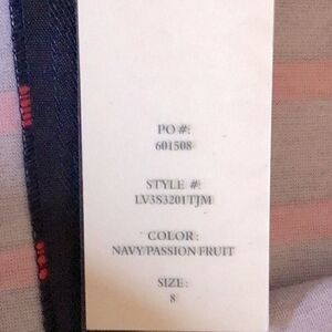 Navy blue with passion fruit pink stripes