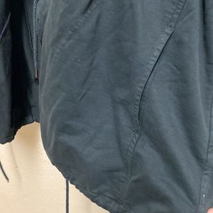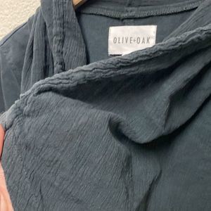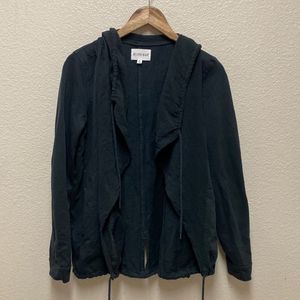 Black open front hooded jacket from Olive + Oak. Gauze cotton hood. Size small.