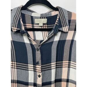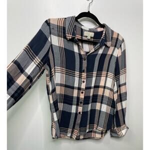 Olive & Oak Plaid Long Sleeve Flannel Button Down Shirt Top Navy Pink Medium