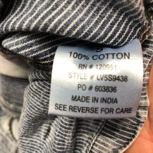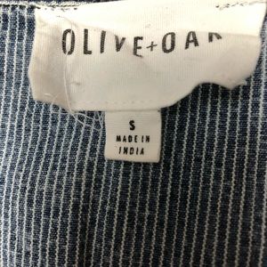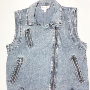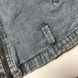 Moto style denim vest in railroad stripe from Olive + Oak. Lightweight fabric. Zip closure. Size S.