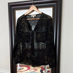 Olive & Oak Sheer Button Down Blouse Women’s Size Small Black Brown Top