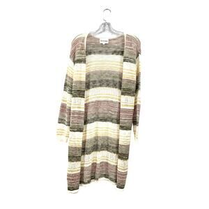 Olive Oak Striped Multicolor Knit Sweater Cardigan Long Sleeve Size M