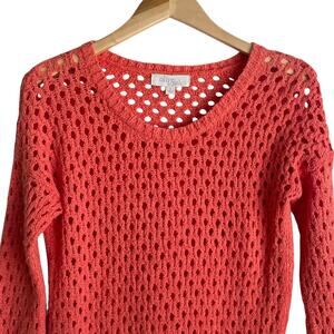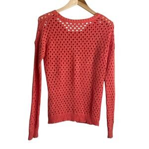 Olive & Oak Women Sweater S Orange Open Knit Beachy Coastal Boho Cottage Chic