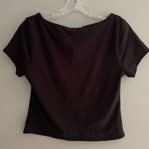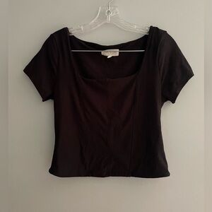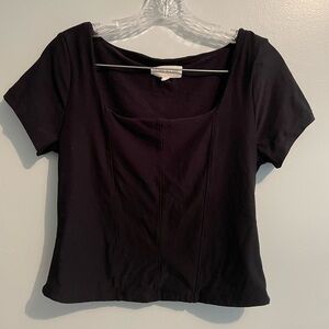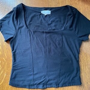 Olive & Oak Women’s Black Short Sleeve Corset Tee Large Square Neck Stretch Soft