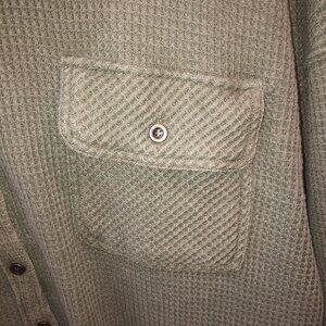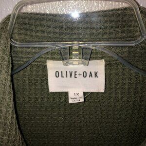 Olive Oak Womens Size 1X Green Long Sleeve Waffle Button Up Collar Pockets Shirt