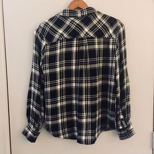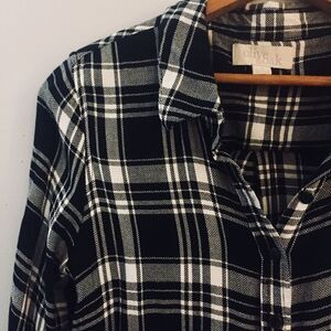 Stitch Fix brand - Olive & Oak black and white plaid flannel button down shirt. This fabric is so soft! No rips or tears, beautiful details like the two buttons on the wrist cuff, excellent quality. Perfect for the upcoming fall season, snatch this piece up before the chilly weather hits!