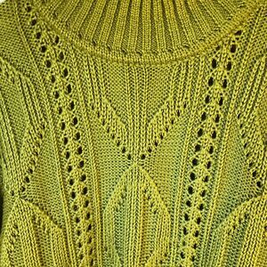 Olive Open Knit Heritage Cable Mockneck Sweater, OS. Balloonsleeves