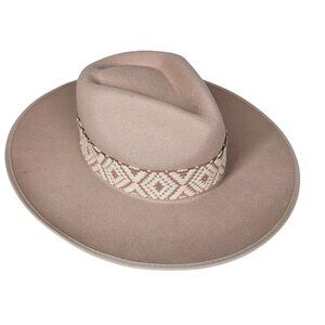 Tags: wide brim hat, beige wool hat, boho hat for women, Olive & Pique, women's hats, wool accessories, woven band hat, sun protection hat, stylish women's hat, boho style hat, neutral tone hat, chic wool hat, wool brimmed hat
