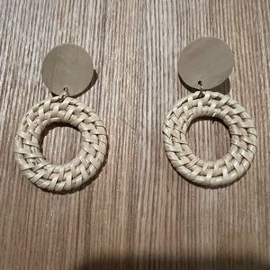Olive Raffia Drop Earring, Rattan