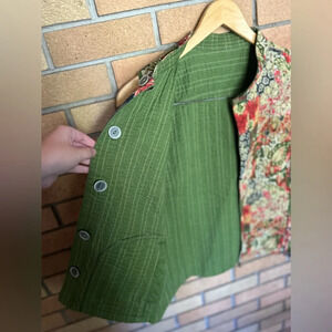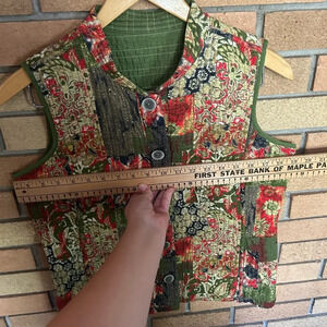Olive Red Yellow Patchwork Print Quilted Reversible Boho Vest Floral Fall