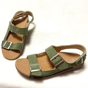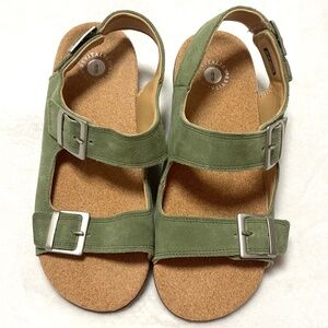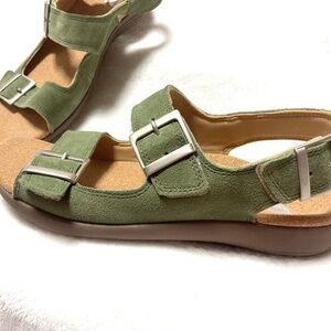 Olive Revitalign Roma Double Buckle Comfort Suede Sandal with Backstrap Sz 10 D