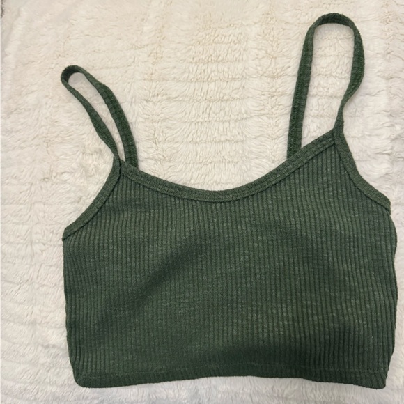Chic olive ribbed knit top. Ideal for everyday style. Cropped fit! Gently preloved! Size small!