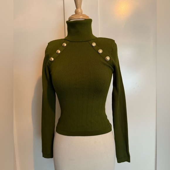 olive sweater with ribbed textured. Tags taken off but never worn. Size XS. Express brand.