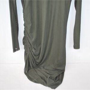 Design: Long sleeve, ruched side detail, asymmetrical hem