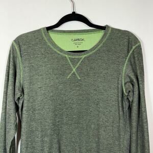 Olive & Lime Green Long Sleeve Tshirt Micro Rib Carbon Small Y2K Contrast Stitch