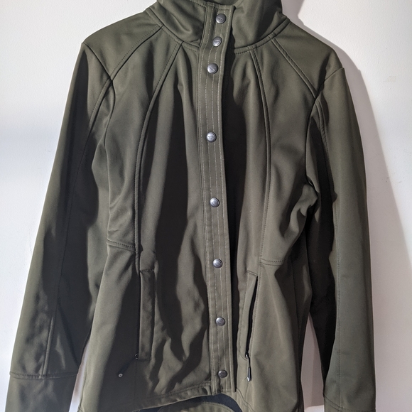Hi-Tec Olive Size medium Soft Shell Jacket Zipper pockets Snaps shut Smoke free, pet friendly home