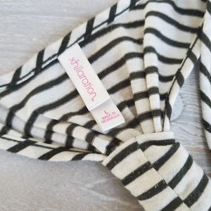 Olive striped top with ruffled detail on one side. GUC for normal wash wear. Racerback. Xhileration size L