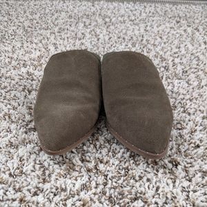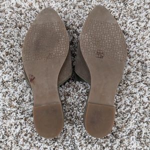 I purchased these from Nordstrom last fall and have only worn these twice. The mules are made of suede and the soles show very mininmal/no wear. There is a small silver stud detailing right above the sole. These are true to size!