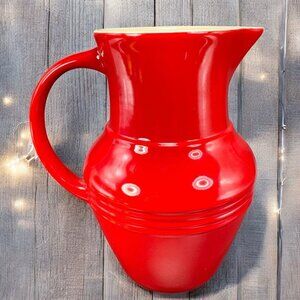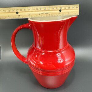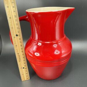 Olive & Thyme Red Stoneware Pitcher Jug Carafe Ceramic Red Made In Thailand VTG