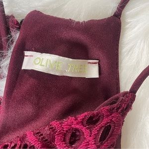 Olive Tree Maroon Red Halter Neck Lace Lined Bodycon Midi Dress Size Small
