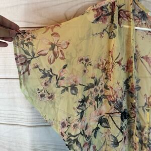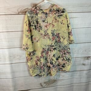Olive Tree Yellow Floral Print Short Sleeve Sheer Cardigan Size Large
