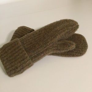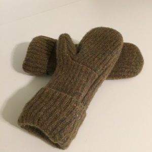 Olive Tweed Wool Felted Mittens with Fleece Lining