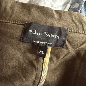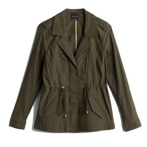 Stylish olive utility jacket. Features multiple pockets and adjustable waist. Perfect for layering.