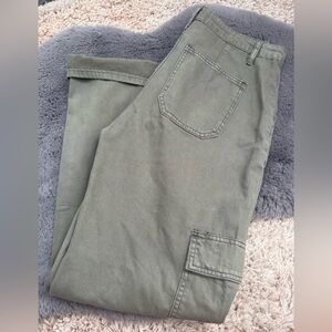 Stylish olive wide leg jeans perfect for a chic, casual look. Comfortable and versatile for any occasion. New without tags