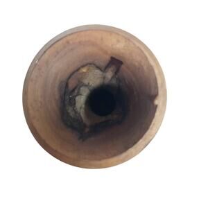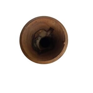 🌿 Handcrafted olive wood vase from Bethlehem, Israel. 1960s vintage. 6 1/8" tall with natural grain and slight tilt. A soulful accent with artisan charm.