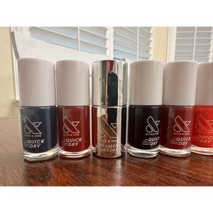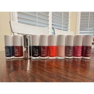 Olive and June 9x Quick Dry Nail Polish Multiple Colors New and one top coat. Comes with all colors shown. A couple have some nail polish splatters from one of them breaking in the box but each bottle is in new condition.