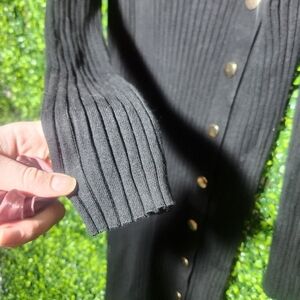 This black long-sleeve dress by Olive & Oak features button detailing along the side. Its classic silhouette and soft fabric make it versatile for casual and dressier occasions.