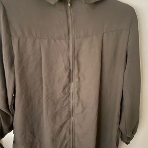Olive green blouse with gold buttons on the front and full length zipper detail in the back. Sleeves can be worn long or 3/4.