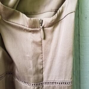 Stunning grey based solid tank dress from Olive des OLIVE. Color is closest to the measurement photos. Tiered style with crochet and ruffled levels. Side zipper closure. No printed size - Please see measurement photos prior to purchase. In good condition with minimal signs of wear.