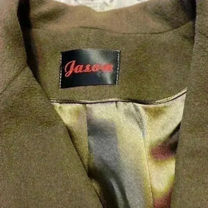 This fully-lined, olive colored, three button coat is absolutely gorgeous. I honestly bought this piece because I loved the style of it. I feel like you could dress it up or dress it down. Based on the measurements I am calling this a large, but please be mindful of the measurements in the pictures.