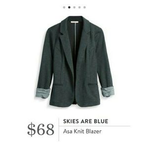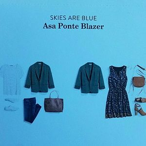 Brand new olive green blazer- just got from Stitch Fix. Large. Super comfortable while keeping it's shape. Ponte knit: comfort/ flexibility of jersey, but thicker. Perfect for spring, winter, as well as air conditioned office.
