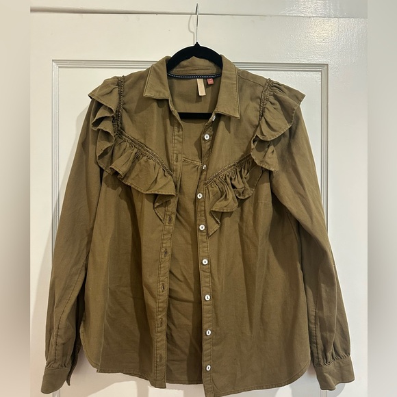 Olive button down with ruffles. Great condition.